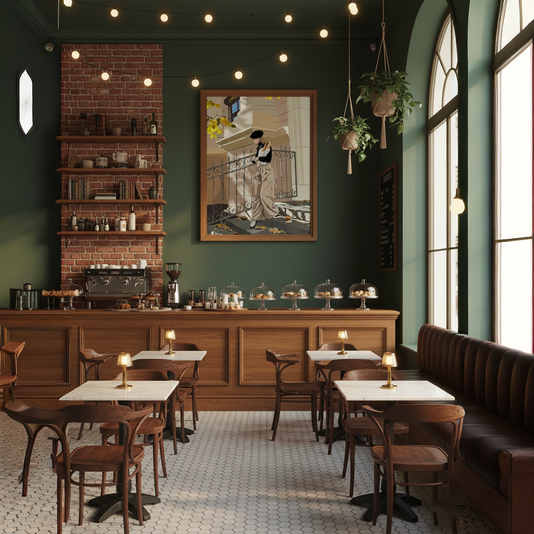 Art Style: Contemporary fashion illustration with Parisian-inspired elegance and urban charm.