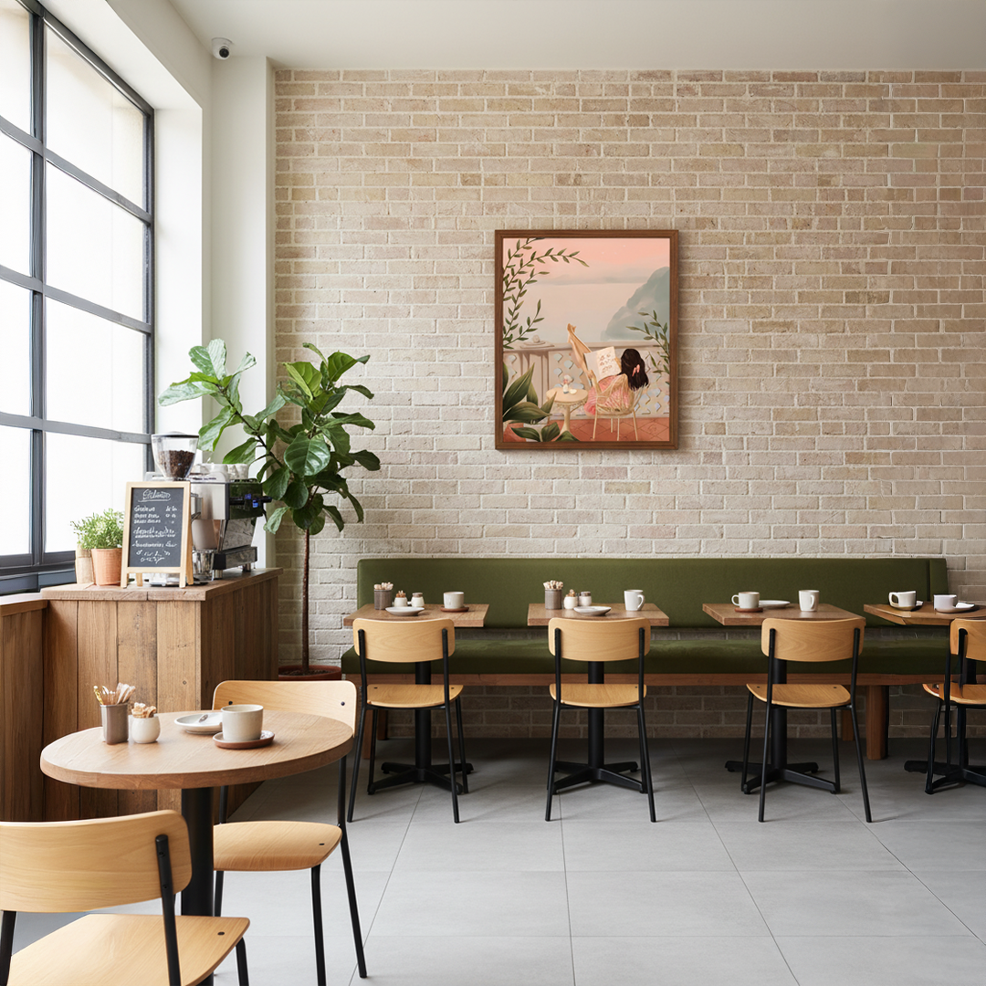 Invite a sense of escape and quiet luxury into your home with Balcony Vista, a serene digital wall painting that celebrates leisure, nature, and the art of slow living. Featuring a tranquil figure enjoying a sunlit balcony surrounded by lush greenery and sweeping mountain views, this artwork evokes the warmth of golden hours and faraway places. Its harmonious palette of peach skies, deep greens, and soft neutrals makes it a stunning statement piece for modern, travel-inspired interiors.