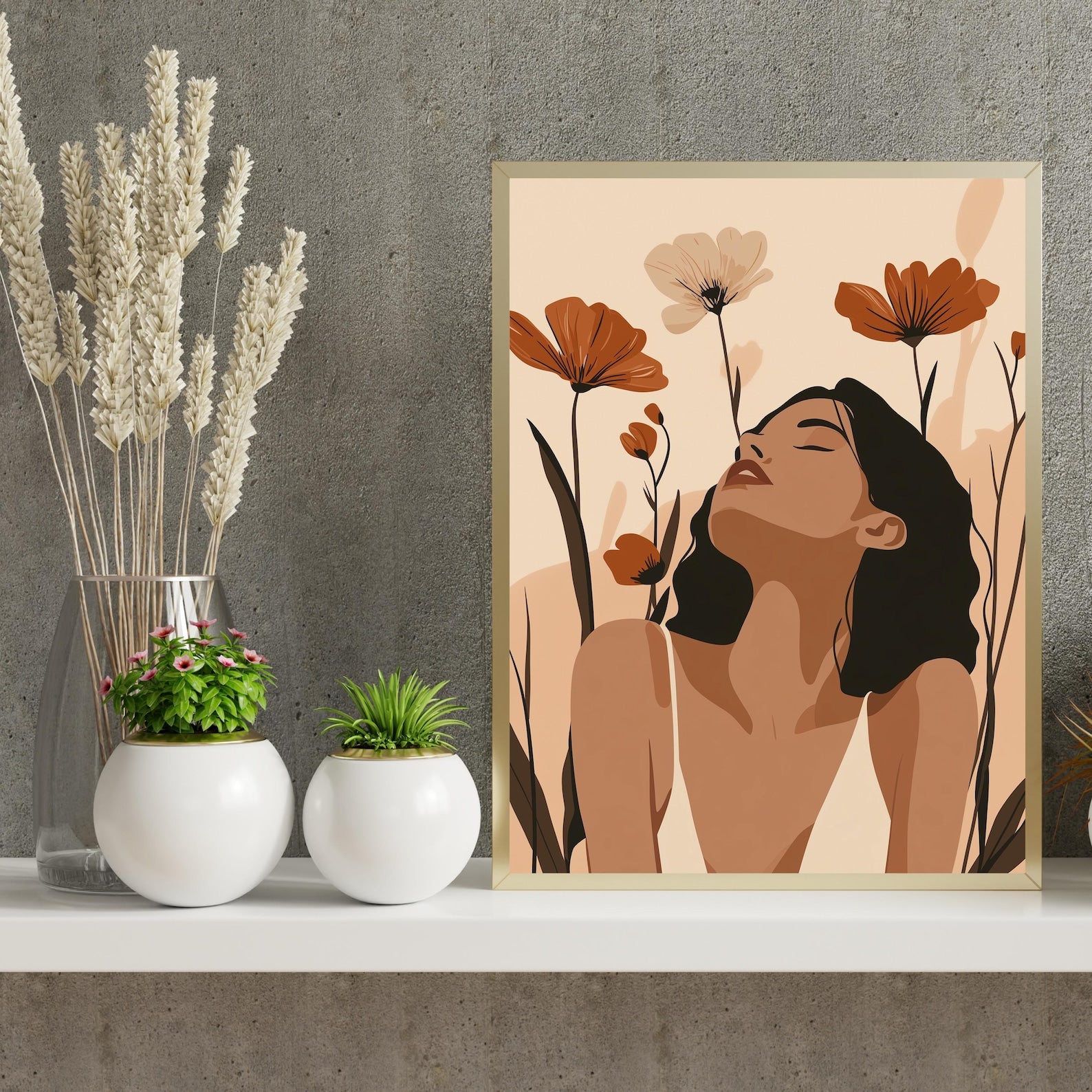 Add warmth and elegance to your space with Blooming Grace, a modern boho floral feminine wall art. This minimalist wall art blends soft florals with a contemporary silhouette, making it perfect for bedrooms, living rooms, or gallery walls.