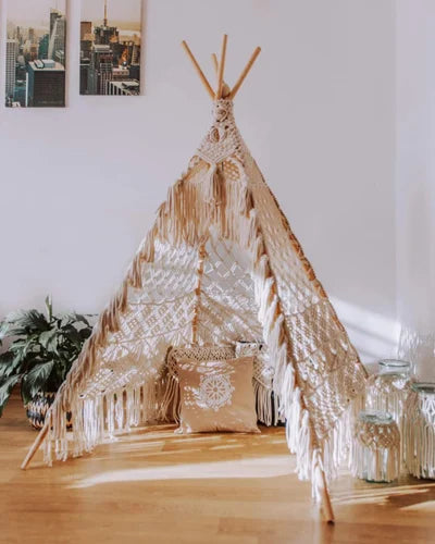 Revamp your interior design with the versatile Bohemia Bliss Bamboo Tent. This exclusive tent is suitable for various activities like leisure, relaxation, reading sessions, and special events such as birthdays, weddings, or showers. It can be effortlessly folded and stored when not in use, making it convenient for future use.