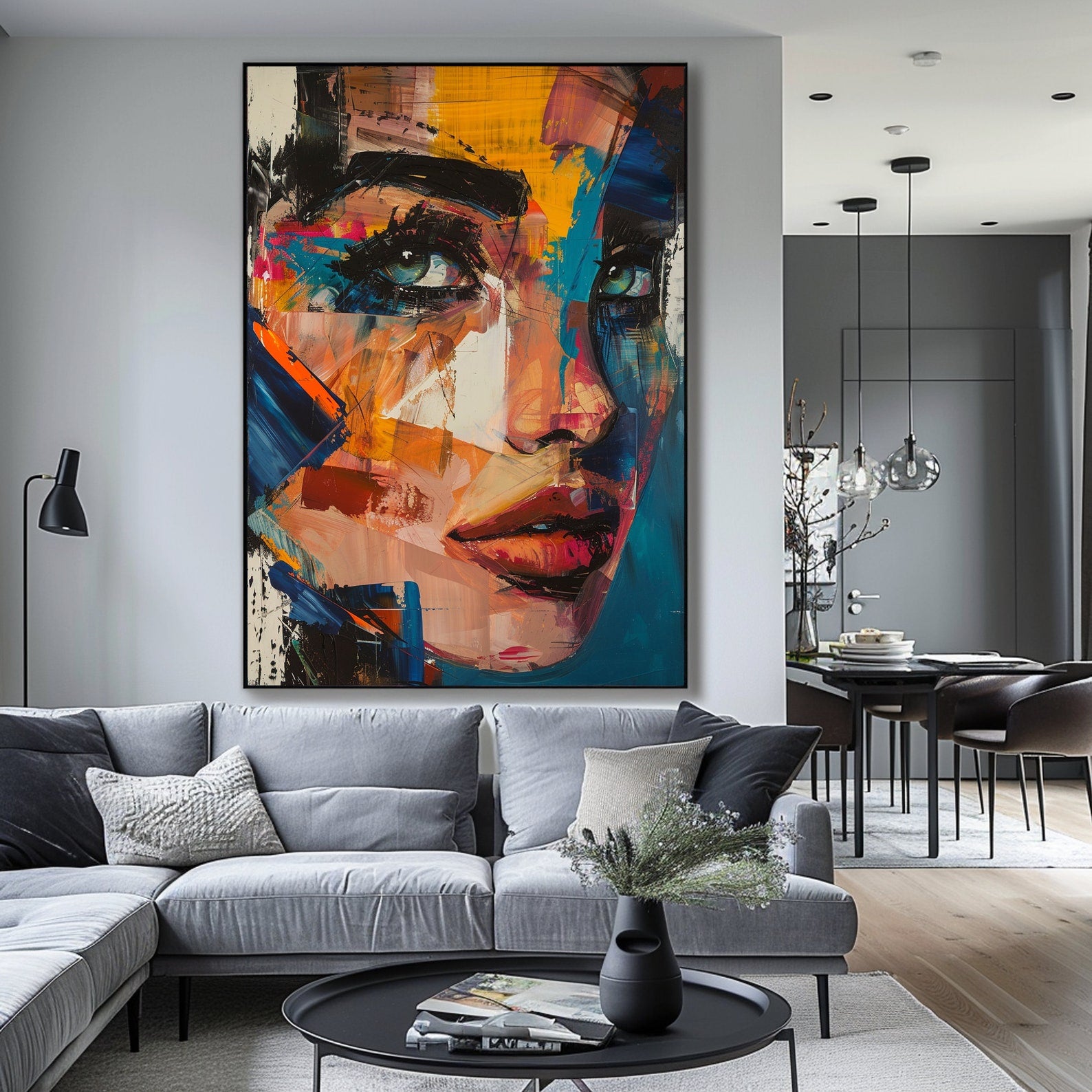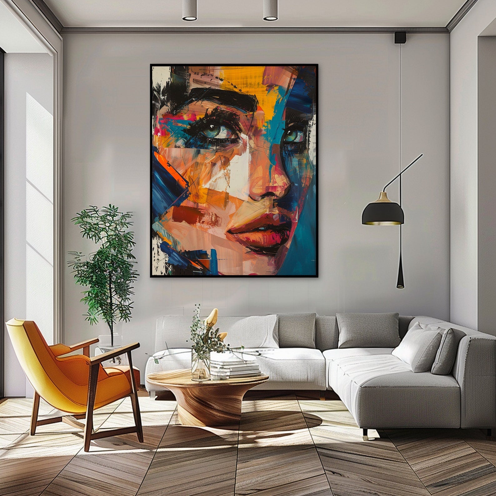 Brighten your walls with the Chromatic Muse Portrait Frame, a vibrant abstract woman face artwork full of color and modern expression. Bold tones and fluid lines create a striking balance of energy and elegance, making it a perfect fit for living rooms, bedrooms, or creative spaces. This versatile piece brings personality and artistic flair to any contemporary or boho-inspired home.