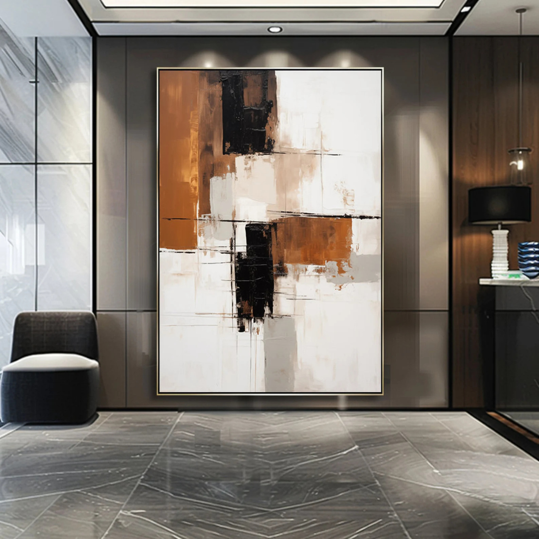 Add timeless elegance to your walls with this neutral abstract digital print. Featuring earthy tones of cognac, taupe, and black, this artwork is perfect for creating a calming, sophisticated atmosphere in any room.