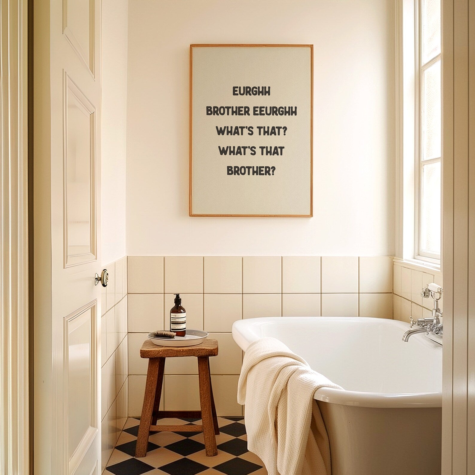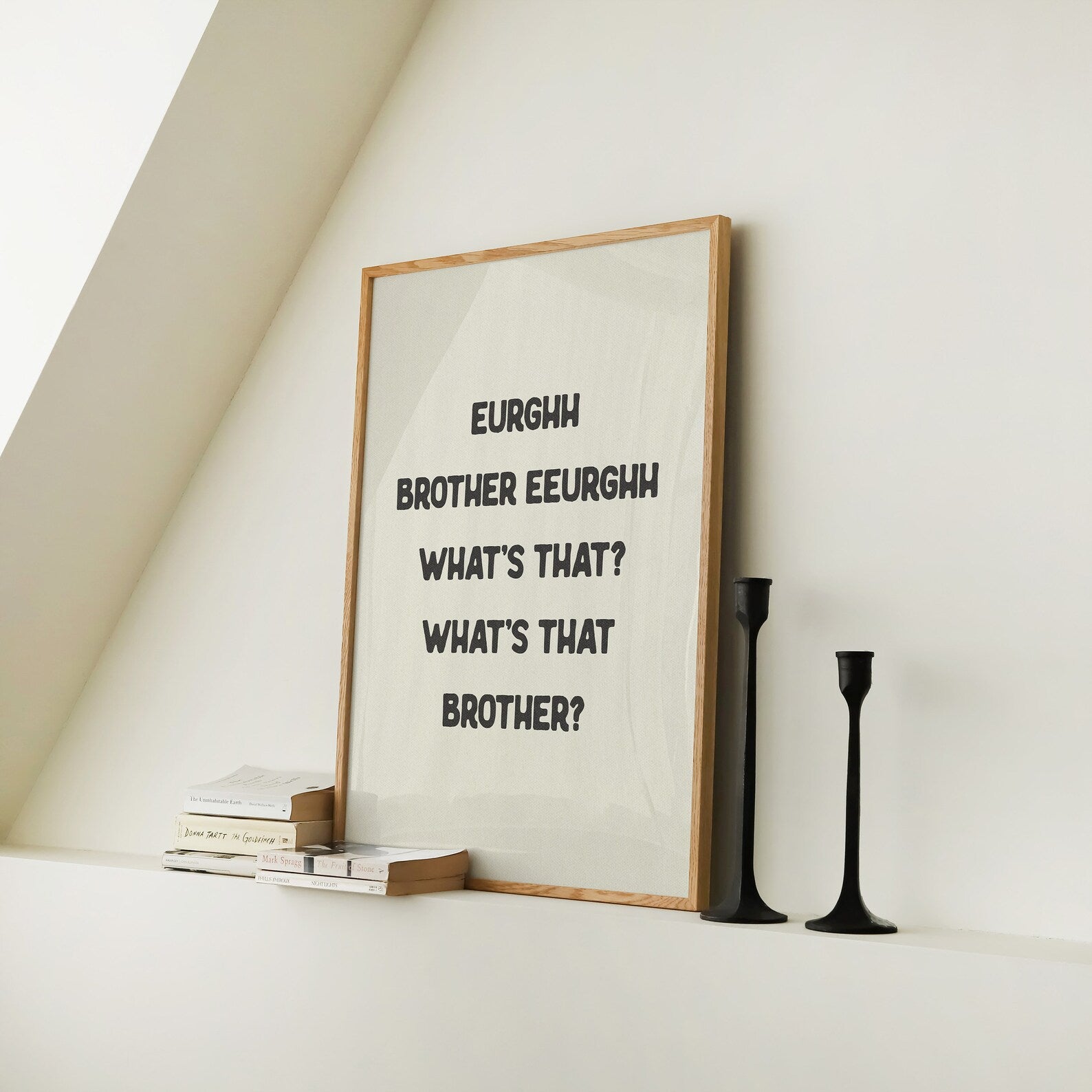 Add a playful edge to your walls with the “Eurghh Brother, What’s That?” A quirky conversation starter for every space. Designed for eclectic gallery walls, cozy dorm corners, or stylish modern apartments, brings humor and personality to your interiors.
