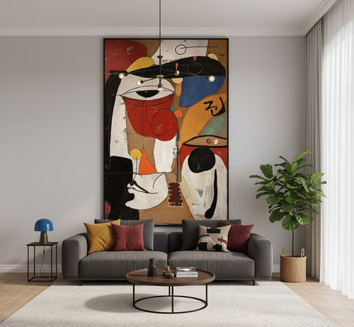 Elevate your interiors with the Fragmented Visage Handmade Painting- a bold abstract cubist artwork inspired by the revolutionary styles of Picasso and Braque. Dynamic geometric planes intersect across a fragmented portrait, brought to life with high-contrast tones of black, white, and ochre, punctuated by vibrant accents of yellow, red, and blue. Each piece is crafted by local artists on fine-textured canvas, blending natural pigments for a timeless, elegant finish. Designed for collectors who appreciate soulful, handmade artistry.