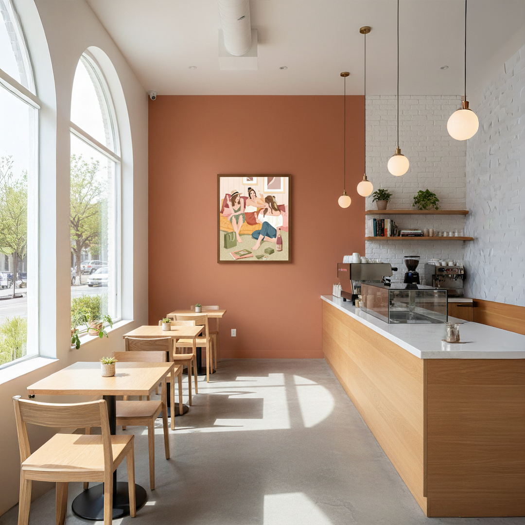 Celebrate the joy of togetherness with the “Girls’ Day In” Digital Wall Painting. This lively artwork captures a heartwarming scene of three friends relaxing, chatting, and enjoying a cozy afternoon surrounded by colorful details and cheerful energy. With its bold tones and fashionable flair, it adds warmth, vibrancy, and personality to any living room or entertainment space- a tribute to laughter, leisure, and lasting friendship.