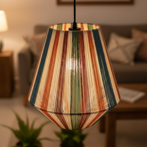 Add a vibrant touch of artistry and texture to your space with the Luma Threads Handcrafted Striped Yarn Pendant Lamp. This conical pendant light is a stunning fusion of craft and color, designed to energize and enliven any room.