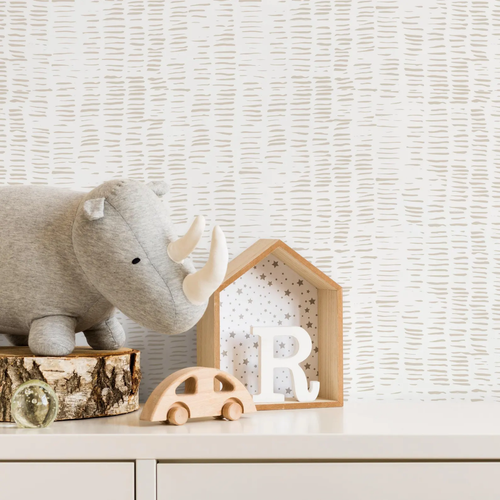 Meadowgrain Wallpaper brings a quiet, artisanal charm to your walls with its soft, horizontal strokes inspired by hand-drawn textures. The creamy ivory base and gentle taupe hatching create a warm, neutral backdrop that adds depth without overwhelming your space. Its organic, woven-like pattern feels calming and refined, blending effortlessly into nurseries, minimalist rooms, or cozy Scandinavian corners with timeless Bare Boho ease.