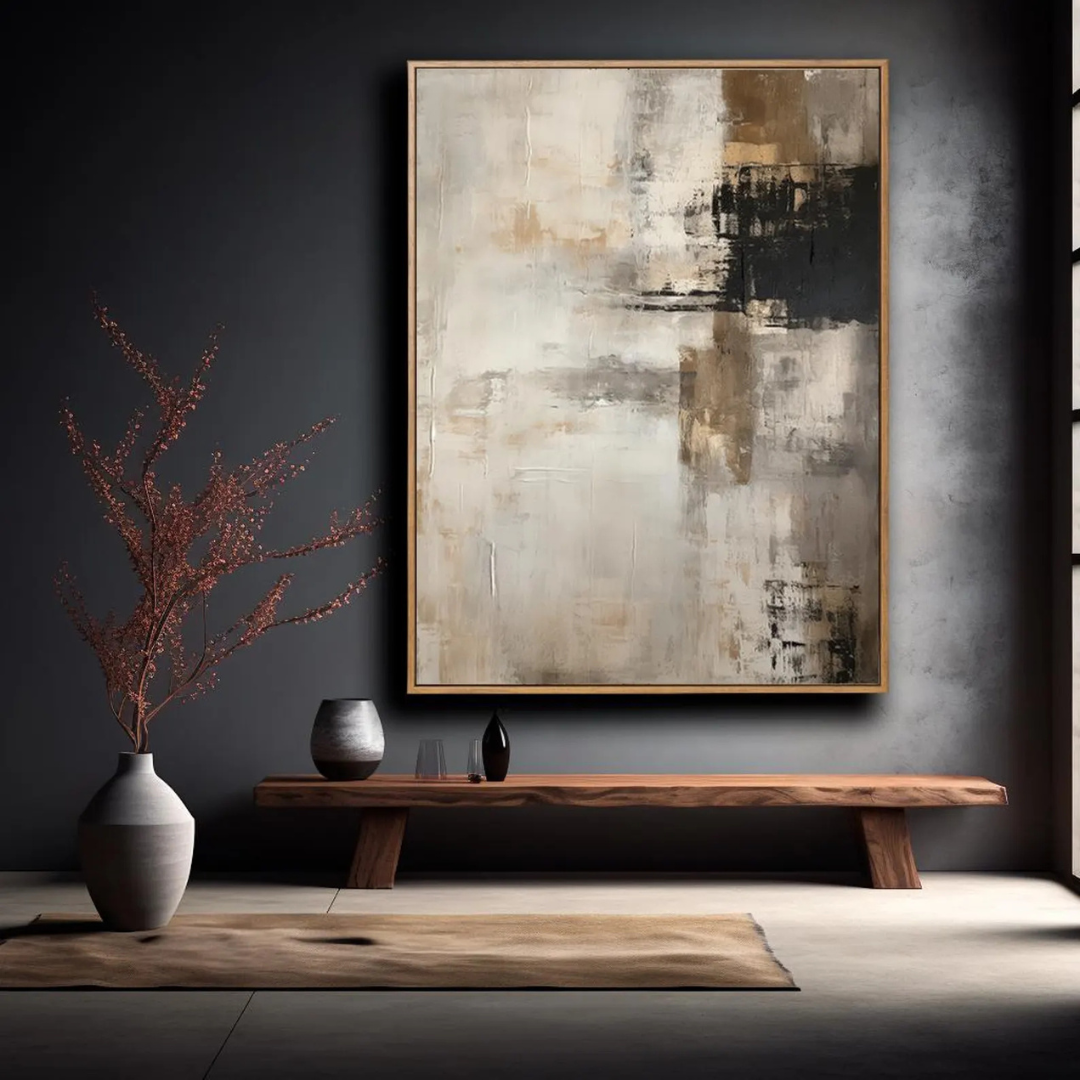 Oasis Calm Wall Art - Handmade Painting brings the serenity of nature indoors. Its neutral tones and hand-textured layers make it an exquisite choice for creating a tranquil, designer-inspired space.