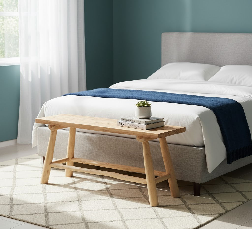 Add a touch of artisanal elegance with the Orin Teak Bench- handcrafted from natural teakwood, each piece showcases unique grain, texture, and character. Its sleek, minimalist design combines style and functionality, making it perfect for hallways, patios, or cozy corners. Durable, luxurious, and one-of-a-kind, the Orin Bench brings timeless Bare Boho charm to any space.