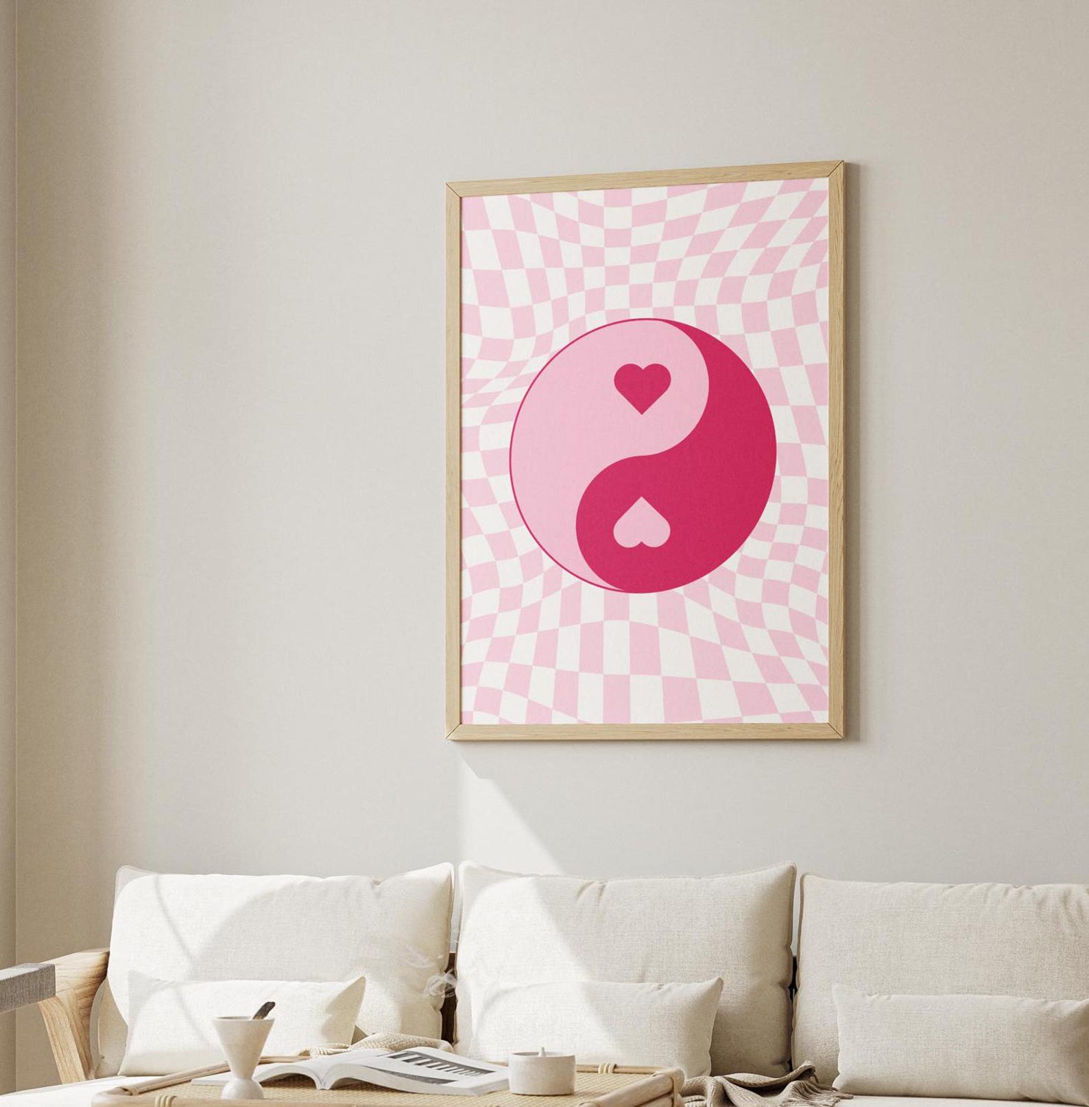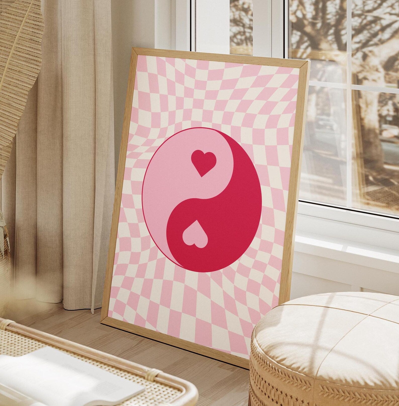 Add a playful pop of retro charm with our Pink Checkered Yin Yang Wall Art. Featuring a pink-and-white checkered pattern with yin-yang and heart motifs, this vibrant frame radiates love, balance, and quirky preppy vibes. Perfect for bedrooms, workspaces, or any eclectic girly corner, it effortlessly refreshes your decor with fun, trendy energy.