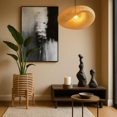 ✔️ Natural Rattan Planter with a lush green plant to bring life and freshness indoors.
