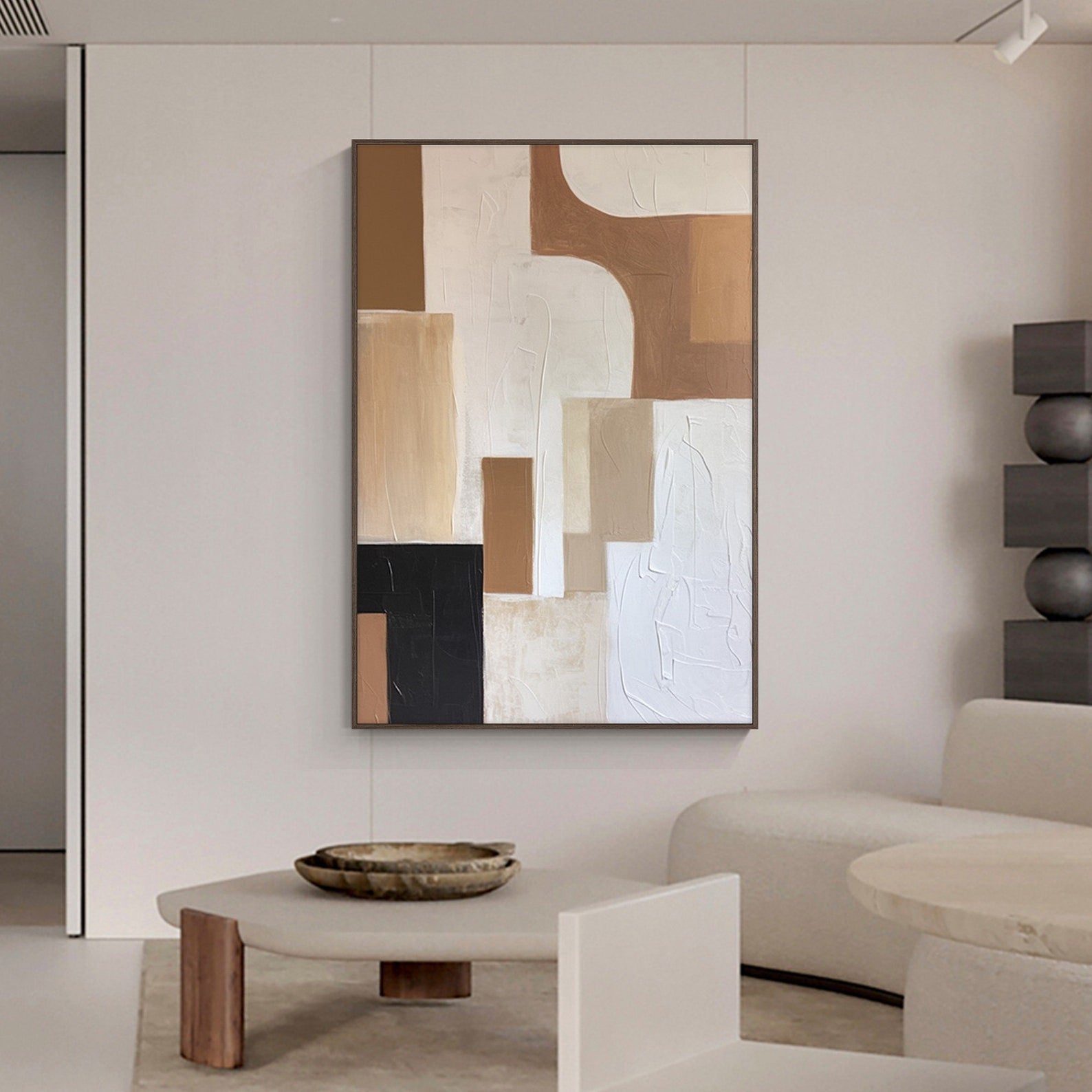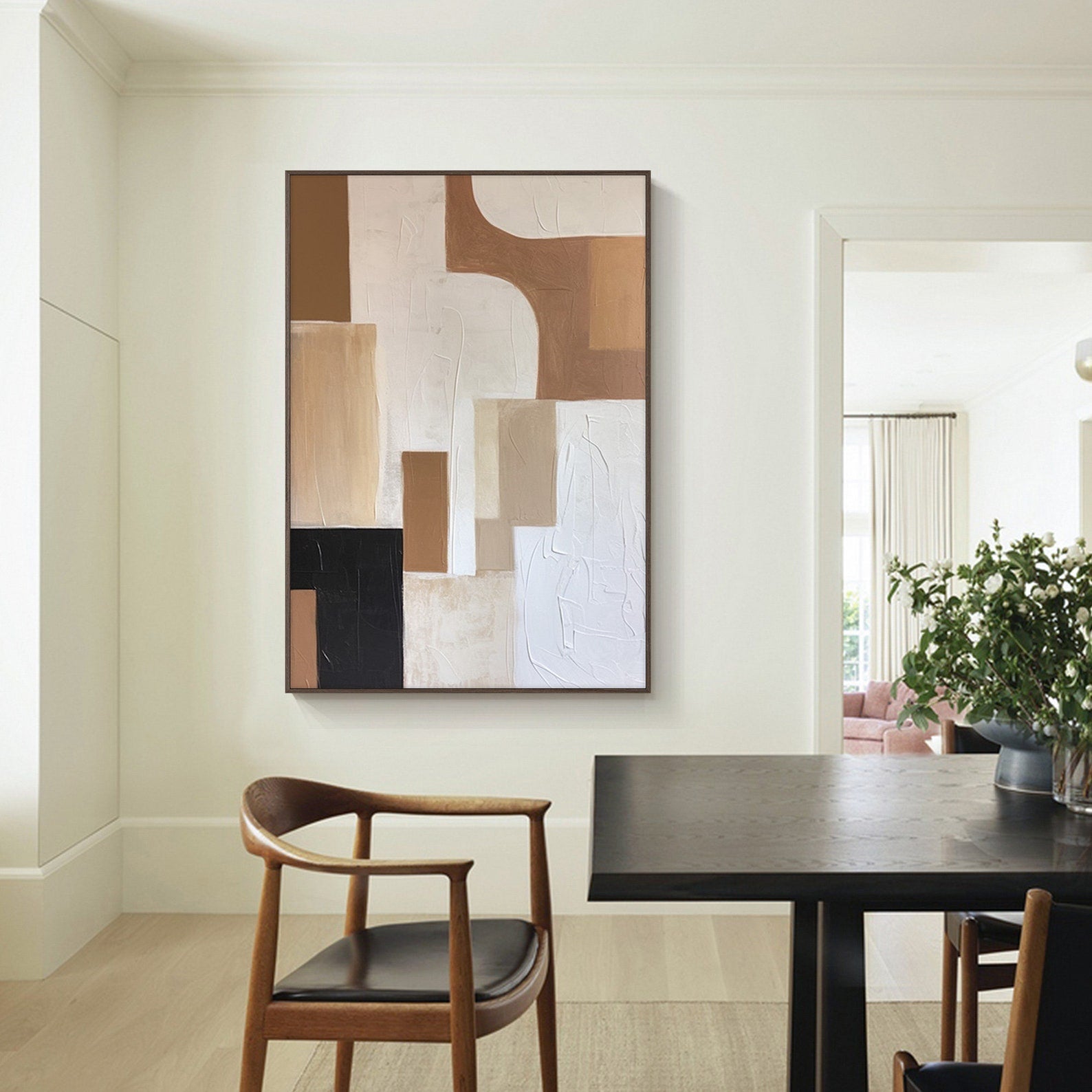 Add modern depth to your interiors with the Terra Form Frame, an abstract geometric painting in warm brown tones with textured block detailing. Inspired by Nordic minimalism, this artwork brings structure and earthy elegance to living rooms, bedrooms, or office spaces. A versatile piece that balances simplicity with bold contemporary style.