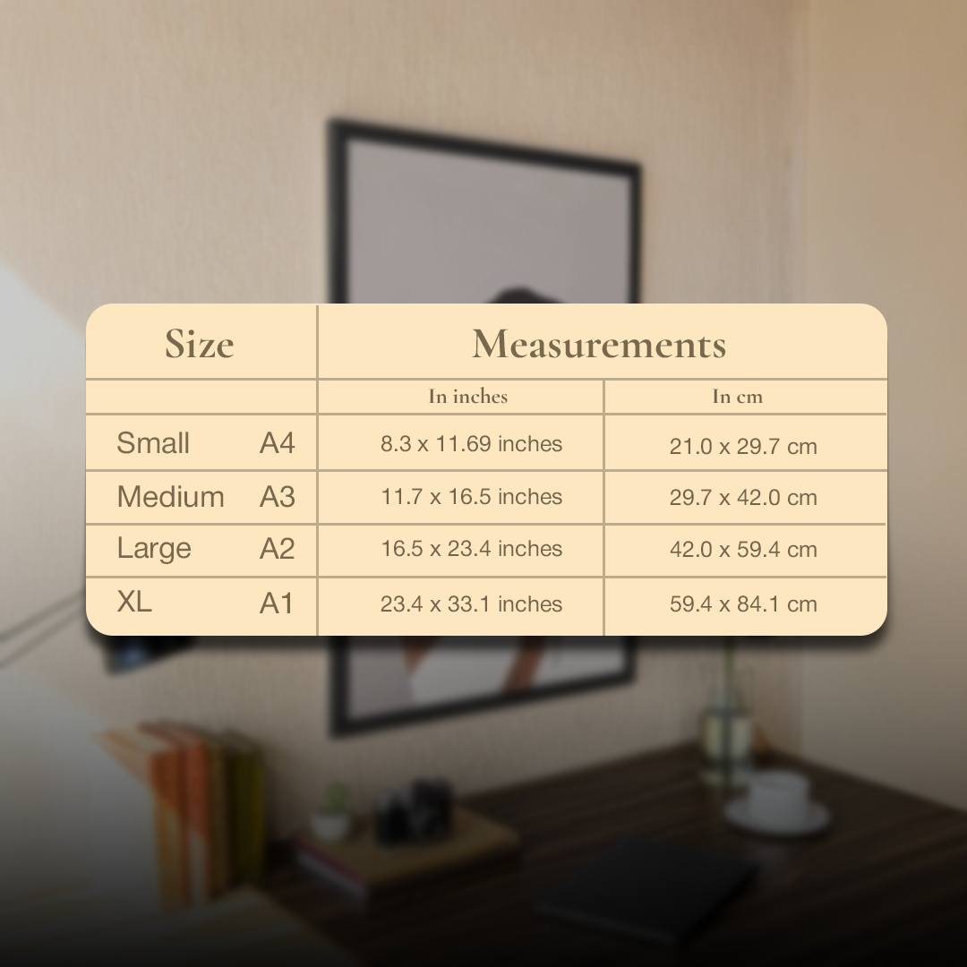 Extra Large A1 - 23.4 x 33.1 inchColor Wooden Inside the Box 1 frame, Mounting hardware Delivery time 5-7 Working Days