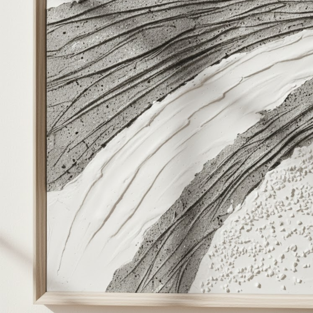 Bring the calm rhythm of nature into your home with the Tranquil Currents Handmade 3D Textured Abstract River Wall Painting. Crafted with intricate, high-relief textures, this artwork captures the essence of flowing water and organic terrain through layered plaster and carved lines. Its monochromatic tones of deep charcoal and soft off-white create a timeless balance of contrast and serenity. Framed in natural wood, it’s a stunning focal point that adds depth, texture, and understated sophistication to modern or wabi-sabi inspired interiors.