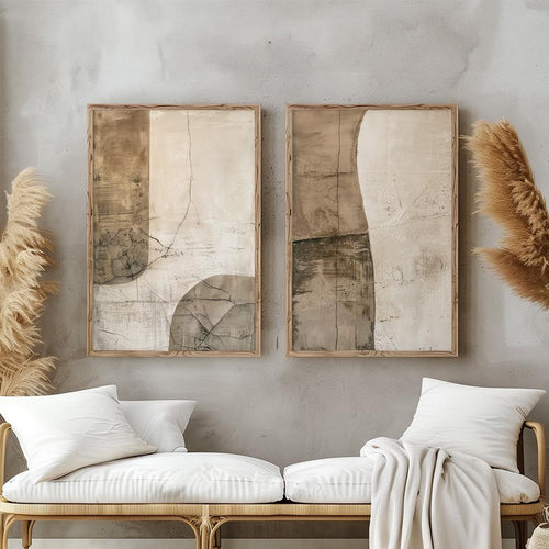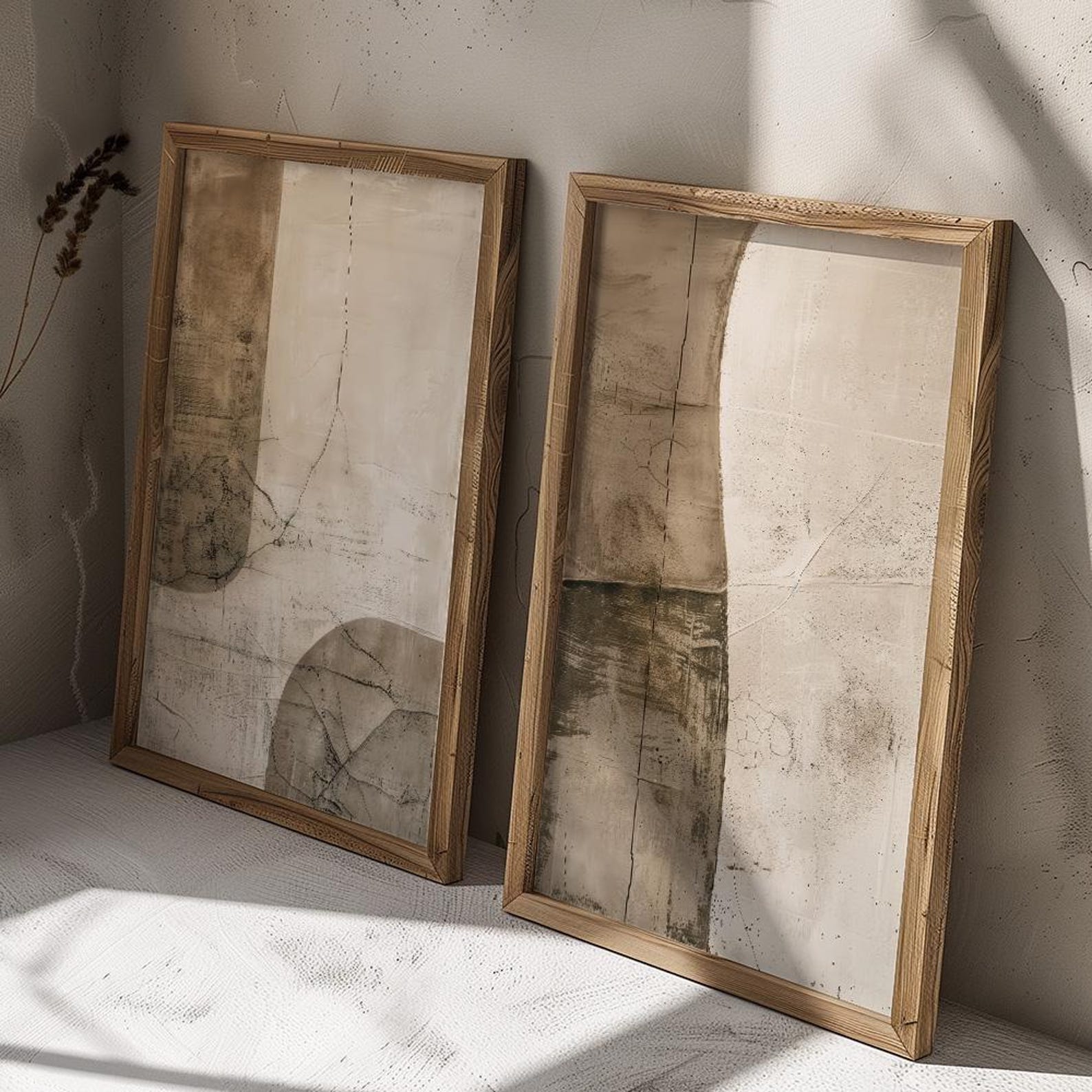 The Tranquility Digital Wall Painting Set features two 16x24” pieces that bring minimalist Wabi Sabi beauty to your home. Rendered in soft beige and warm brown tones, this Japandi-inspired abstract set creates a serene and balanced atmosphere. Perfect for pairing together or styling across your walls, it adds depth, contemporary elegance, and natural charm to modern interiors.