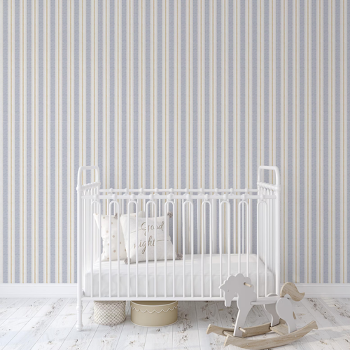 Whisperlane Soft Stripe Wallpaper brings a gentle, dreamy warmth to any room with its finely textured vertical lines in muted blue-grey and pale golden beige. The subtle dash-like pattern creates a hand-drawn, woven feel that instantly soothes the senses and adds quiet sophistication. Its vertical rhythm softly elongates walls, making spaces feel taller, lighter, and beautifully serene. Perfect for nurseries, kids’ rooms, or any corner that calls for calm, airy charm in true Bare Boho style.
